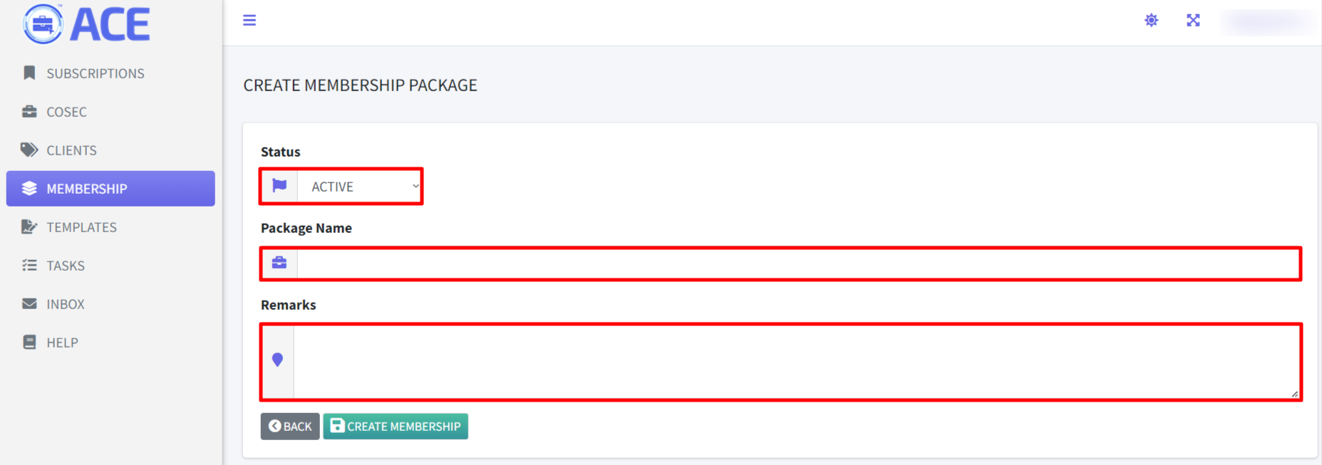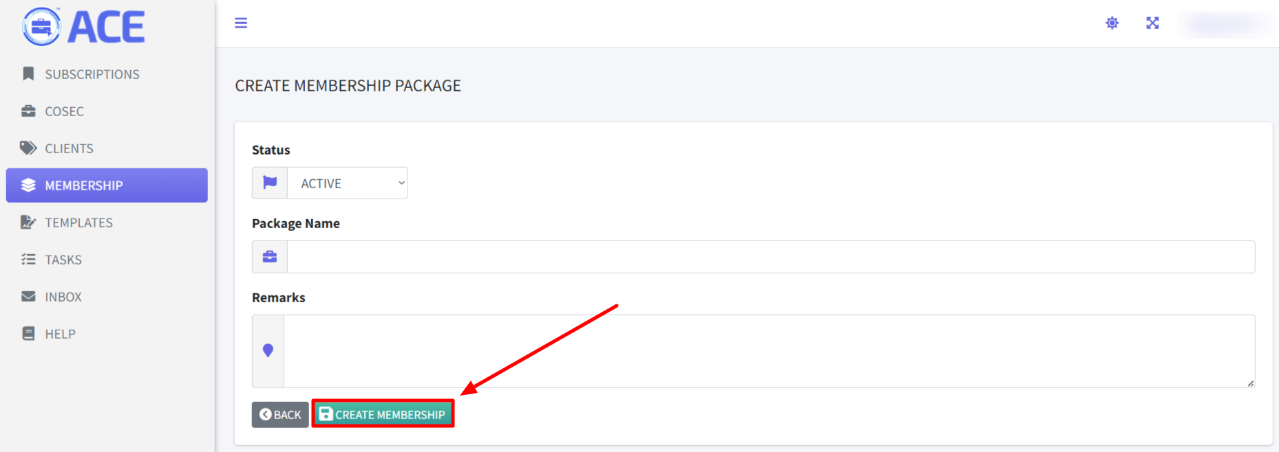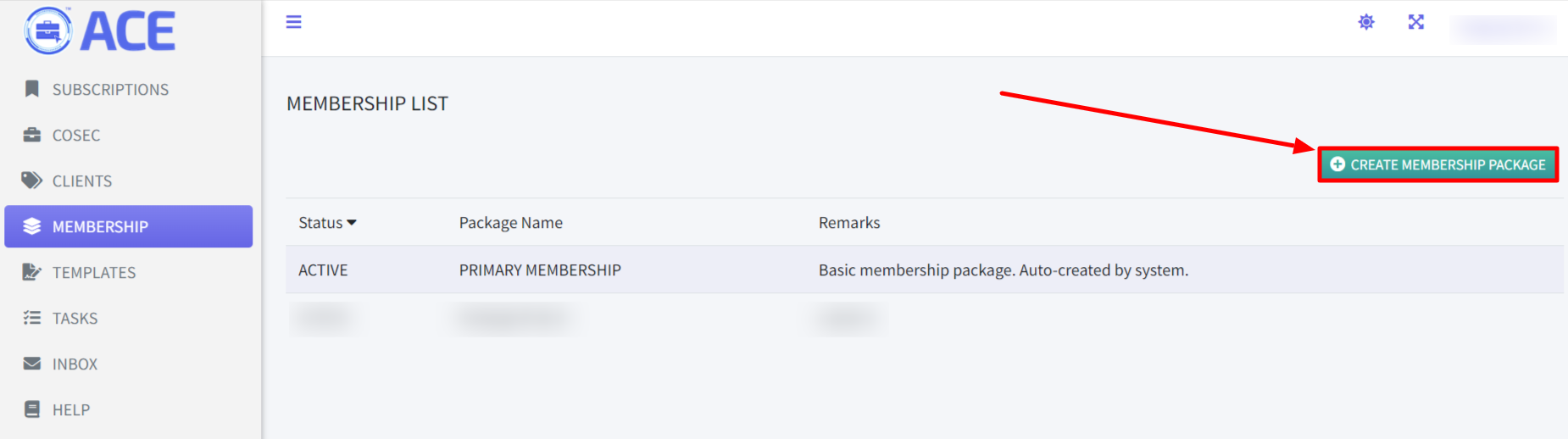 - Click “+ CREATE MEMBERSHIP PACKAGE” button on the right side of the screen.